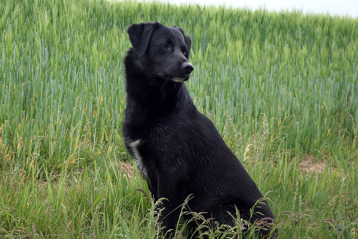 Das ist Loras, ein Mischlingshund aus dem Tierschutz, der mit mir zusammen die Ausbildung zum Therapiebegleithund gemeistert hat.